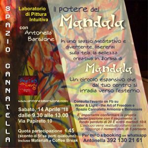 In uno spazio meditativo e divertente libererai, sulla tela, la bellezza creativa in forma di Mandala. Il Mandala, un circolo espansivo che dal cuore si irradia verso l’esterno.